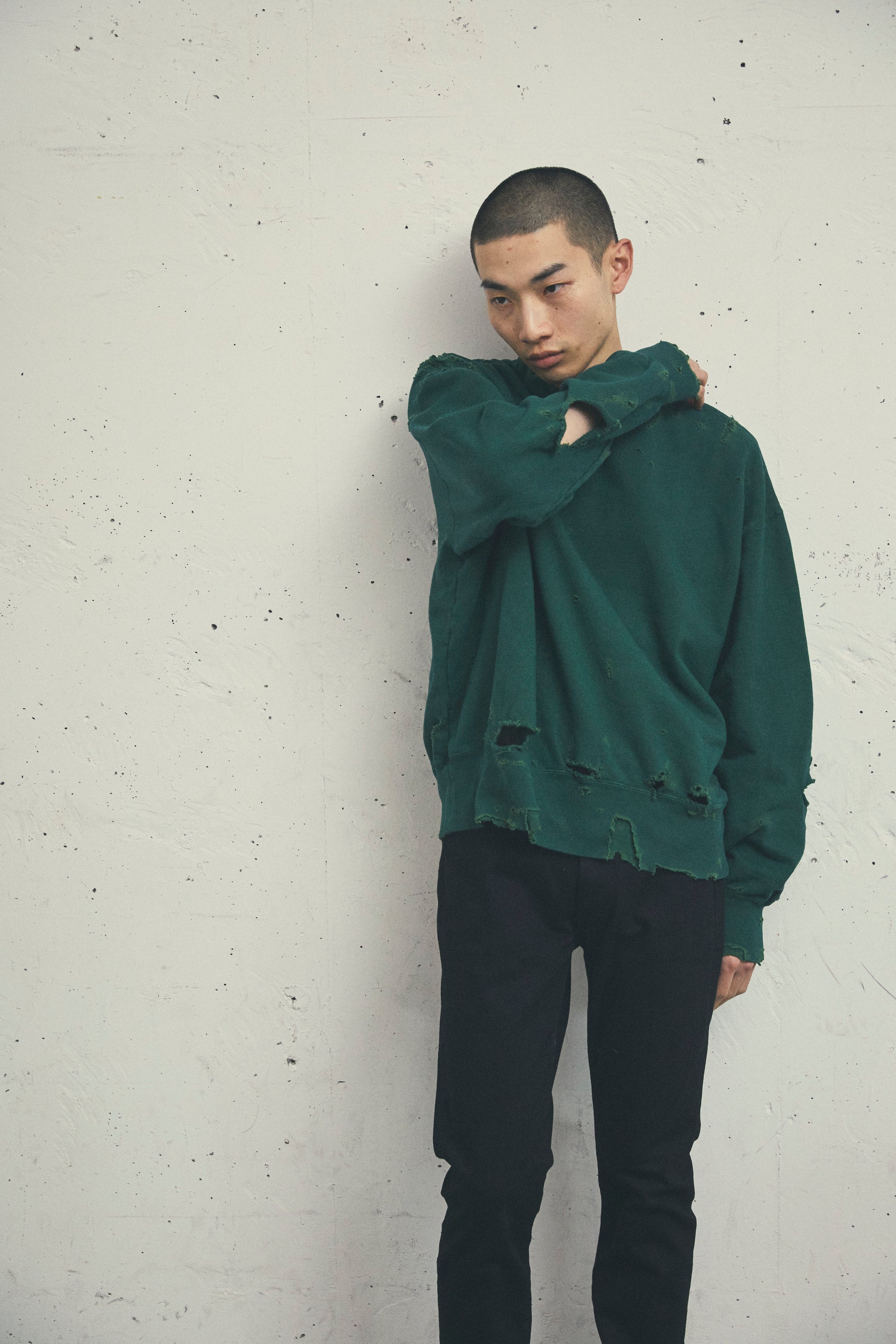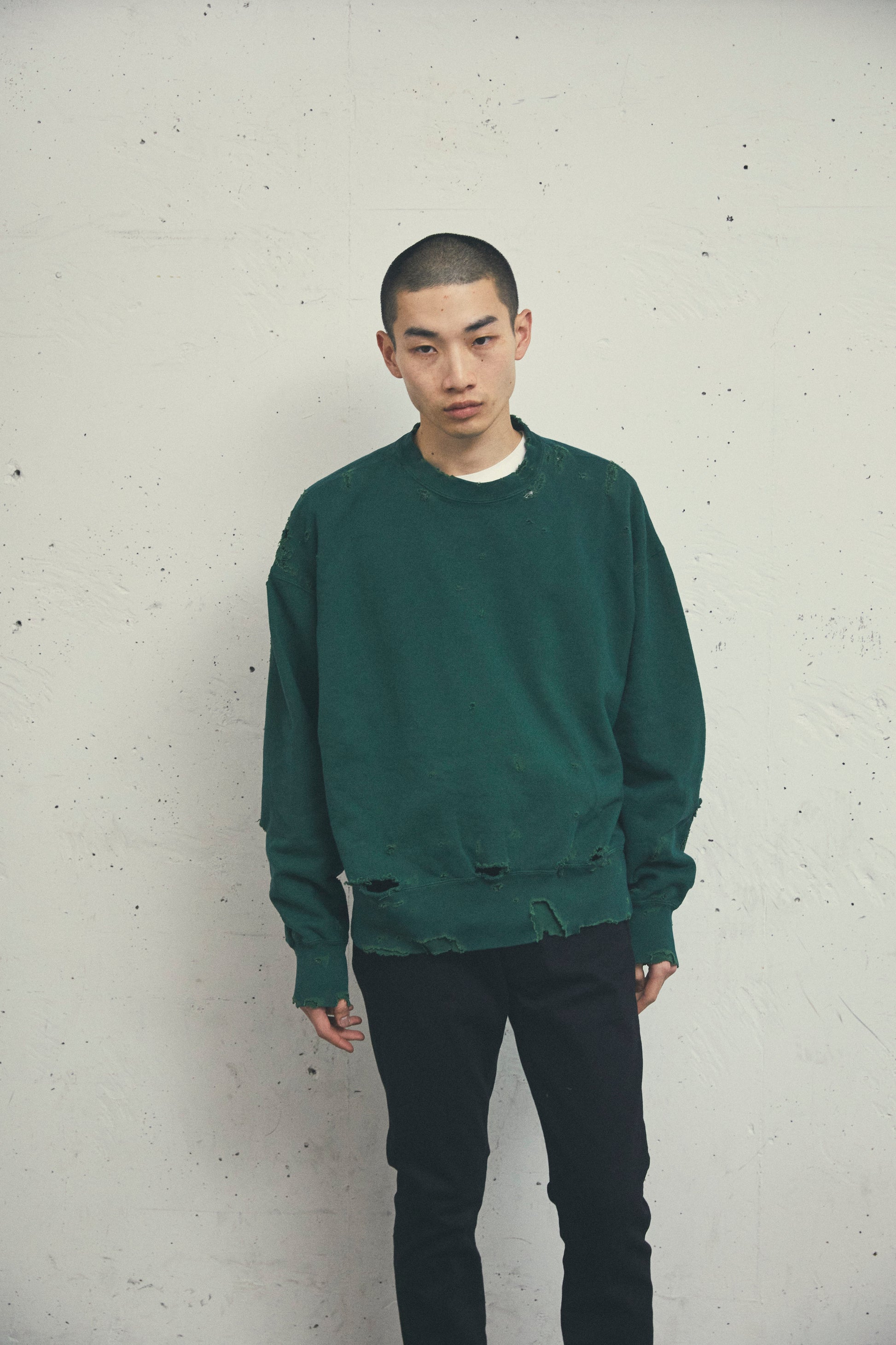 MORE DAMAGE WASHED CREW NECK SWEAT