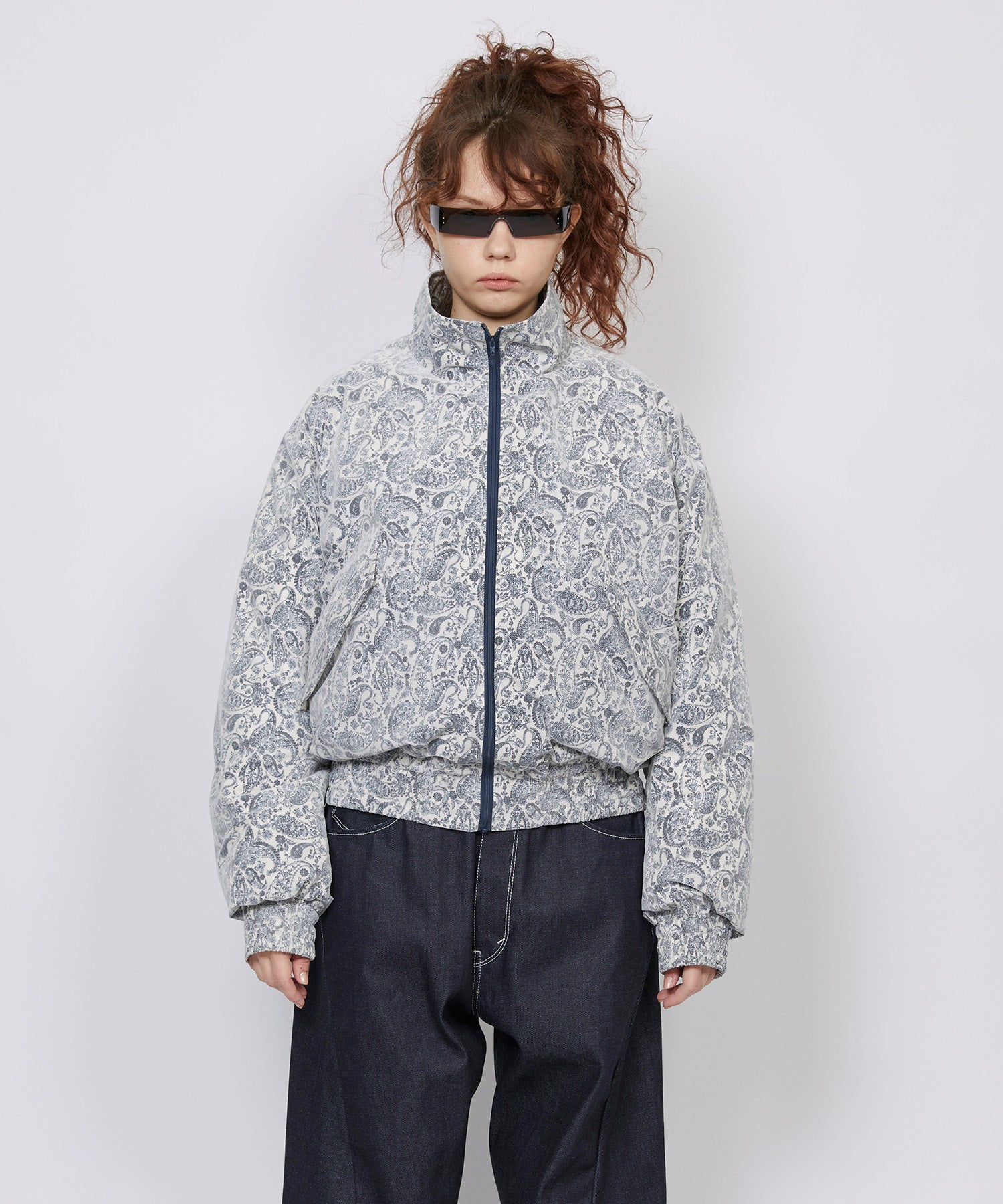 Crafted in Kyoto, this paisley-print piece combines traditional Japanese craftsmanship with luxurious flocking techniques to add texture and depth. A "cordell" effect enhances its elegance, and the down-filled, short silhouette offers lightweight comfort and retro appeal, embodying KURO's commitment to blending heritage techniques with modern luxury.