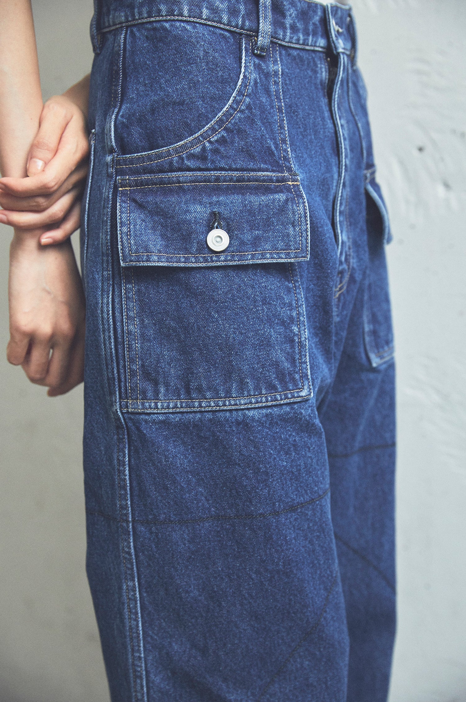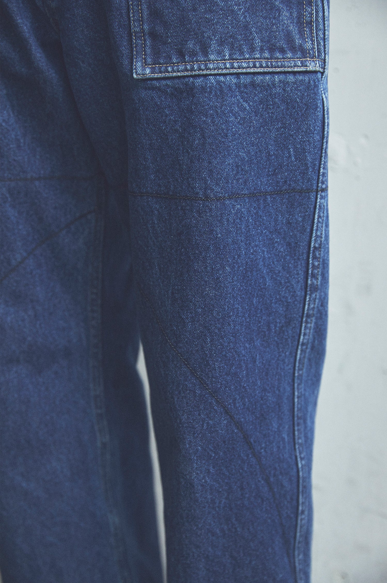パンツ全体に施された円弧を描くようなステッチラインやポケット配置は、「1:1.618」の比率に沿って構成。計算されたカッティングがシルエットに自然な流れを生み出し、立体的な奥行きを演出します。
