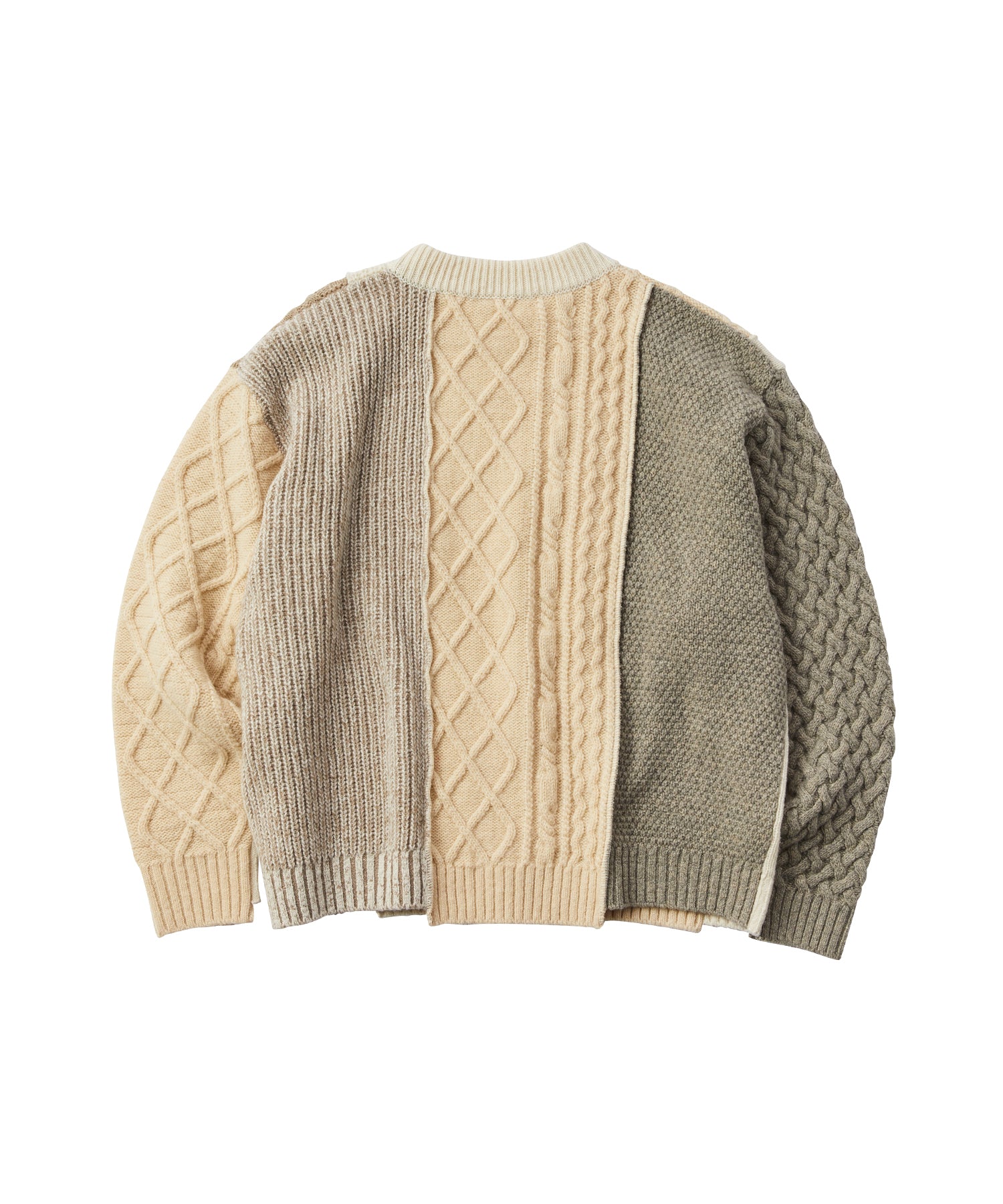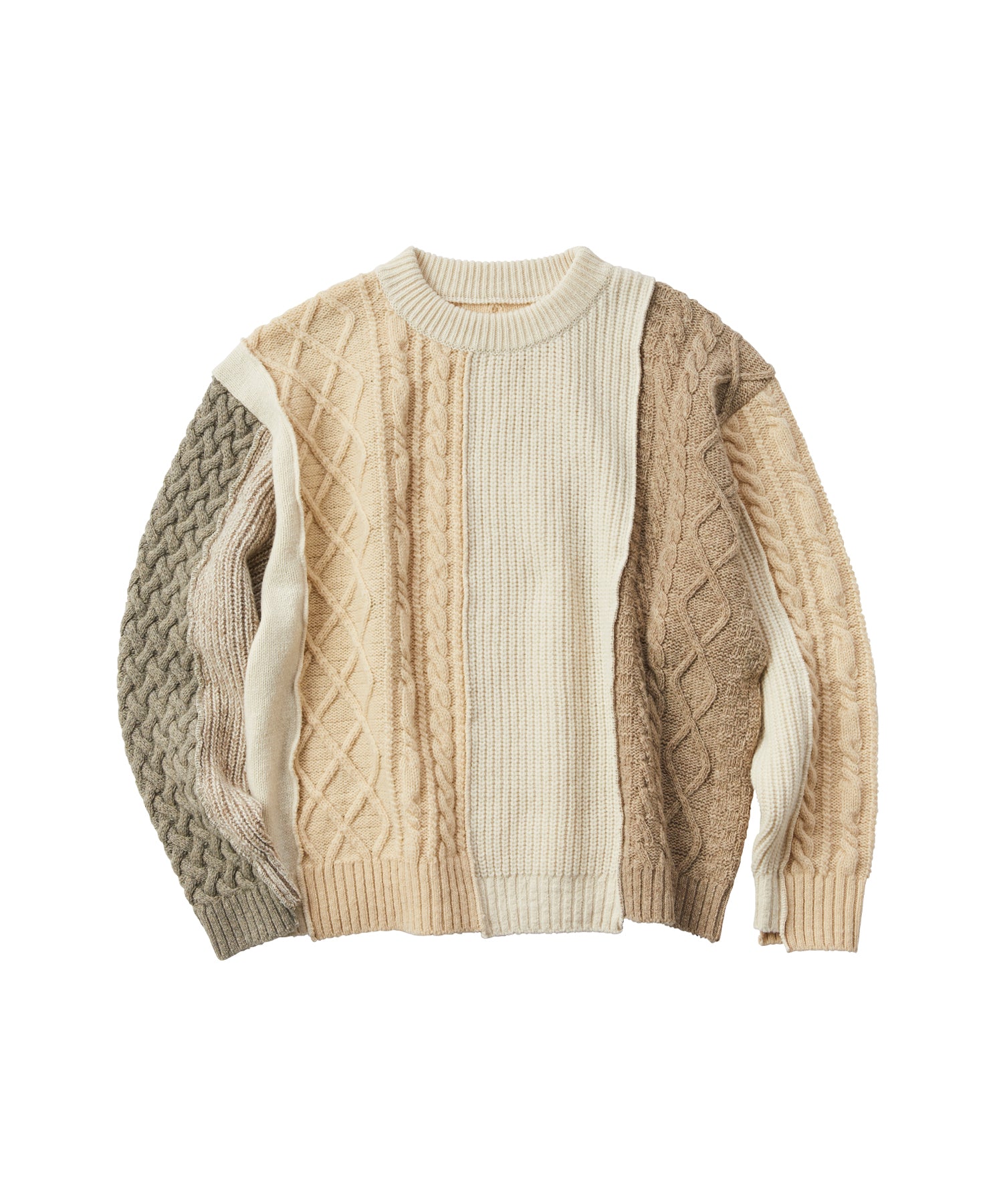 1パーツ事に編地、カラーを変える事により、他に無い唯一無二のニット製品に仕上がりました。 シルエットはアームが太めなビッグサイズになります。
