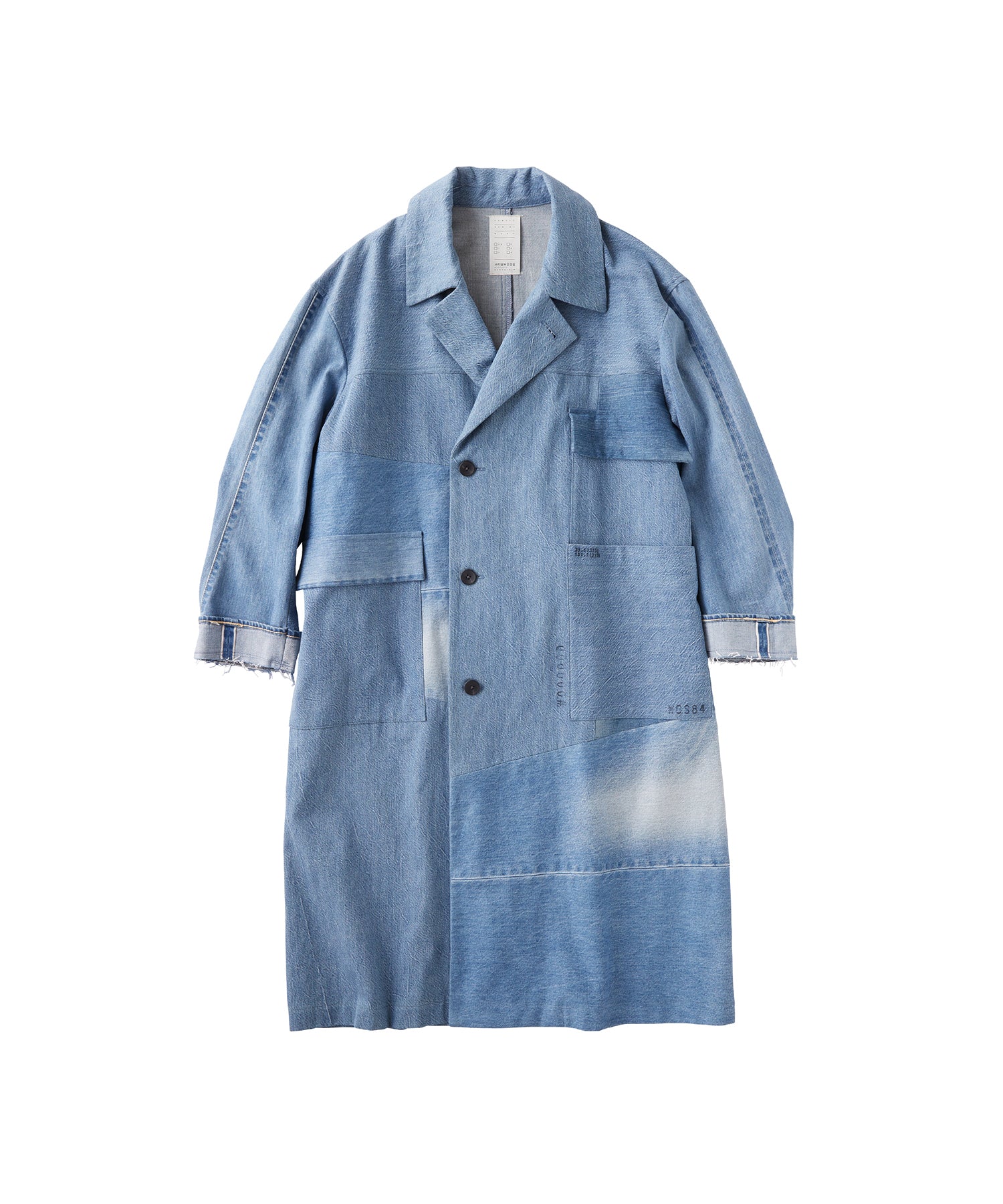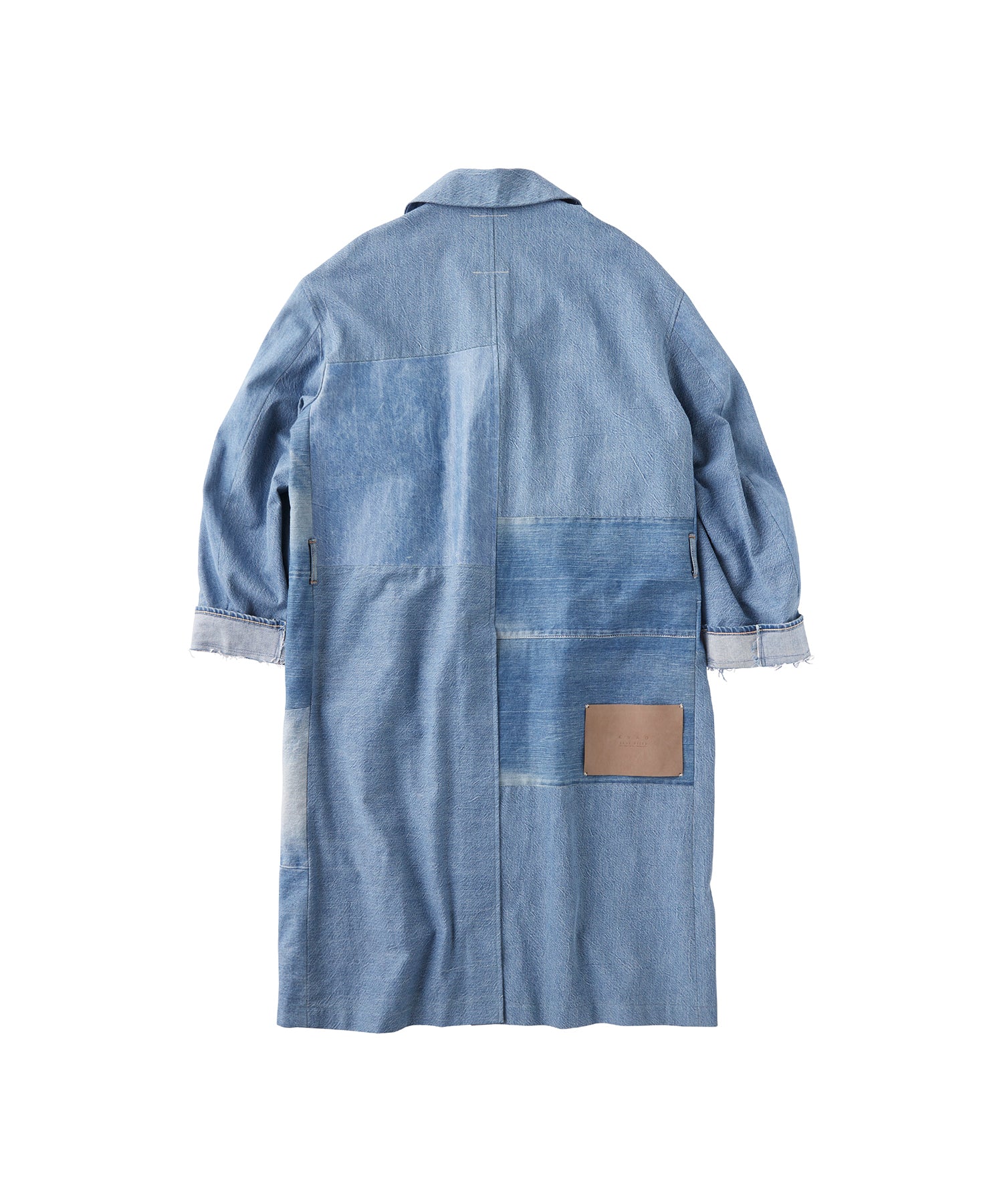 異なるデニム生地を組み合わせたパッチワーク仕様が特徴的な一着。色落ちや風合いの異なる素材が織りなすアシンメトリーな表情が、唯一無二の存在感を放ちます。