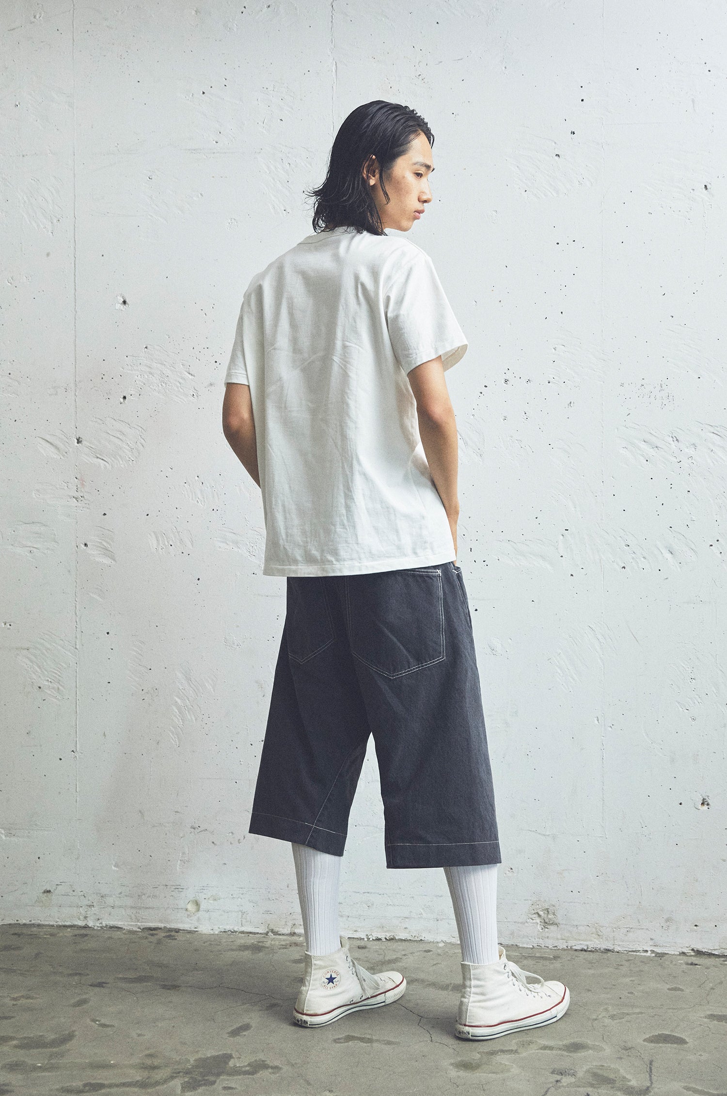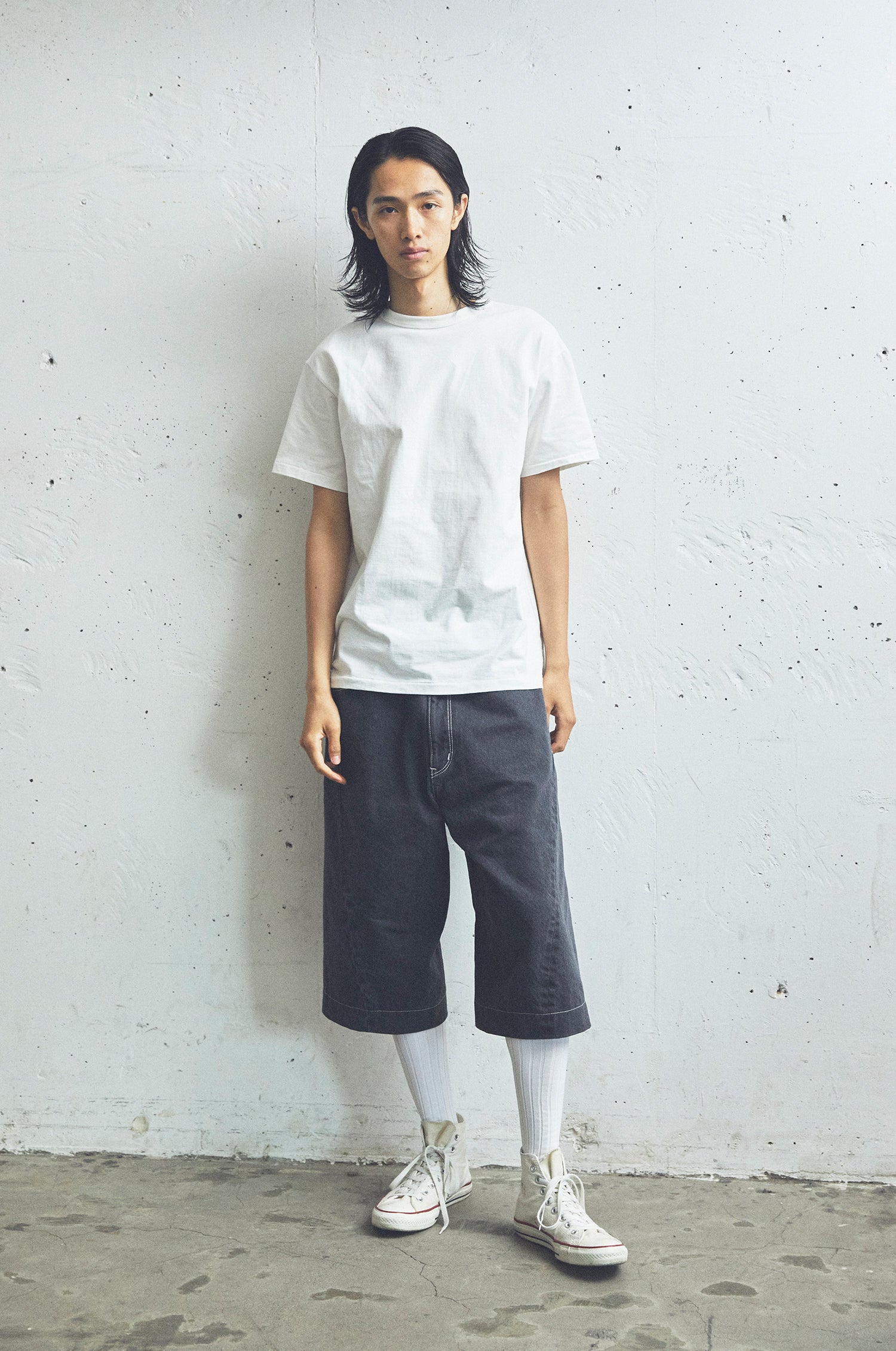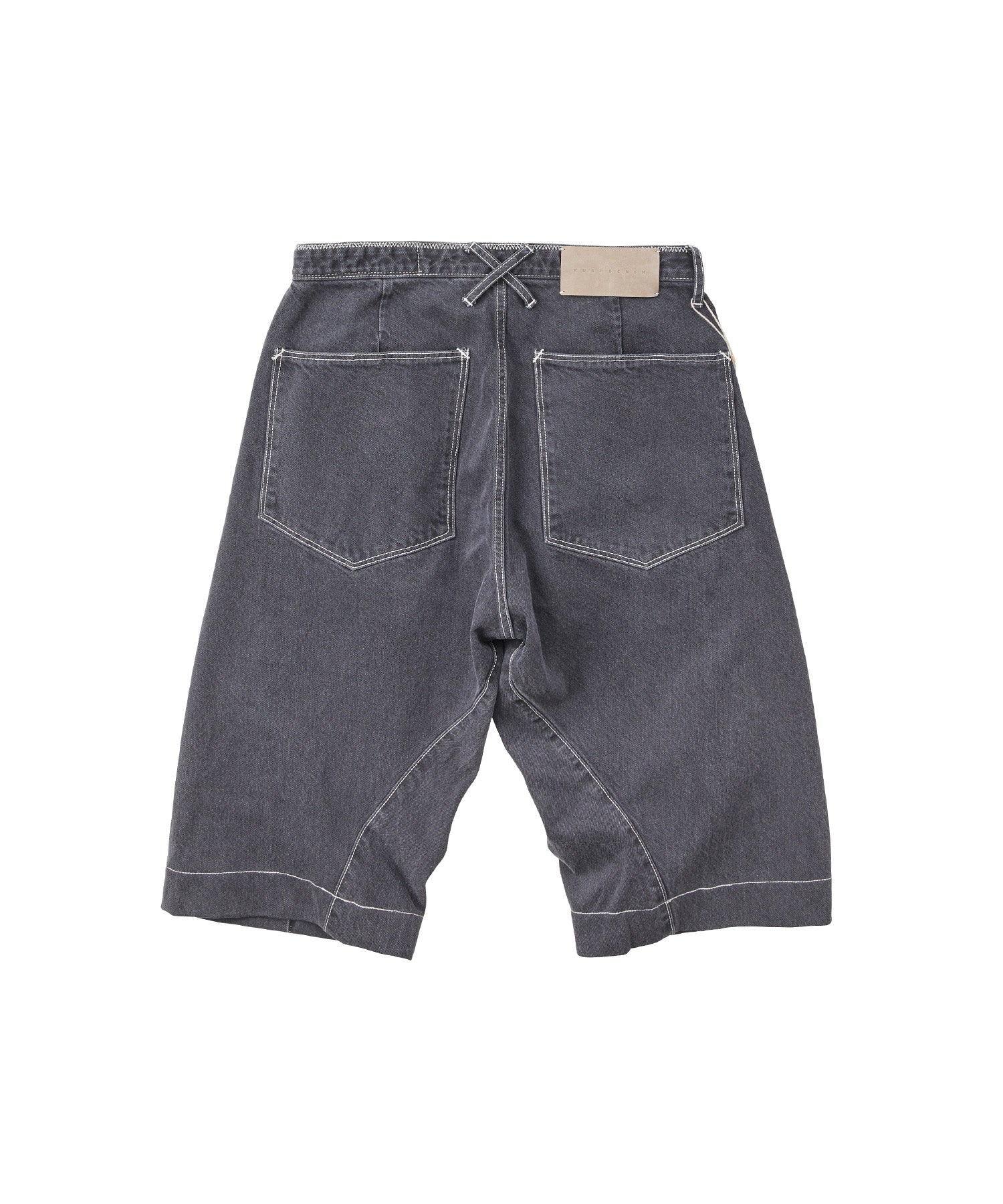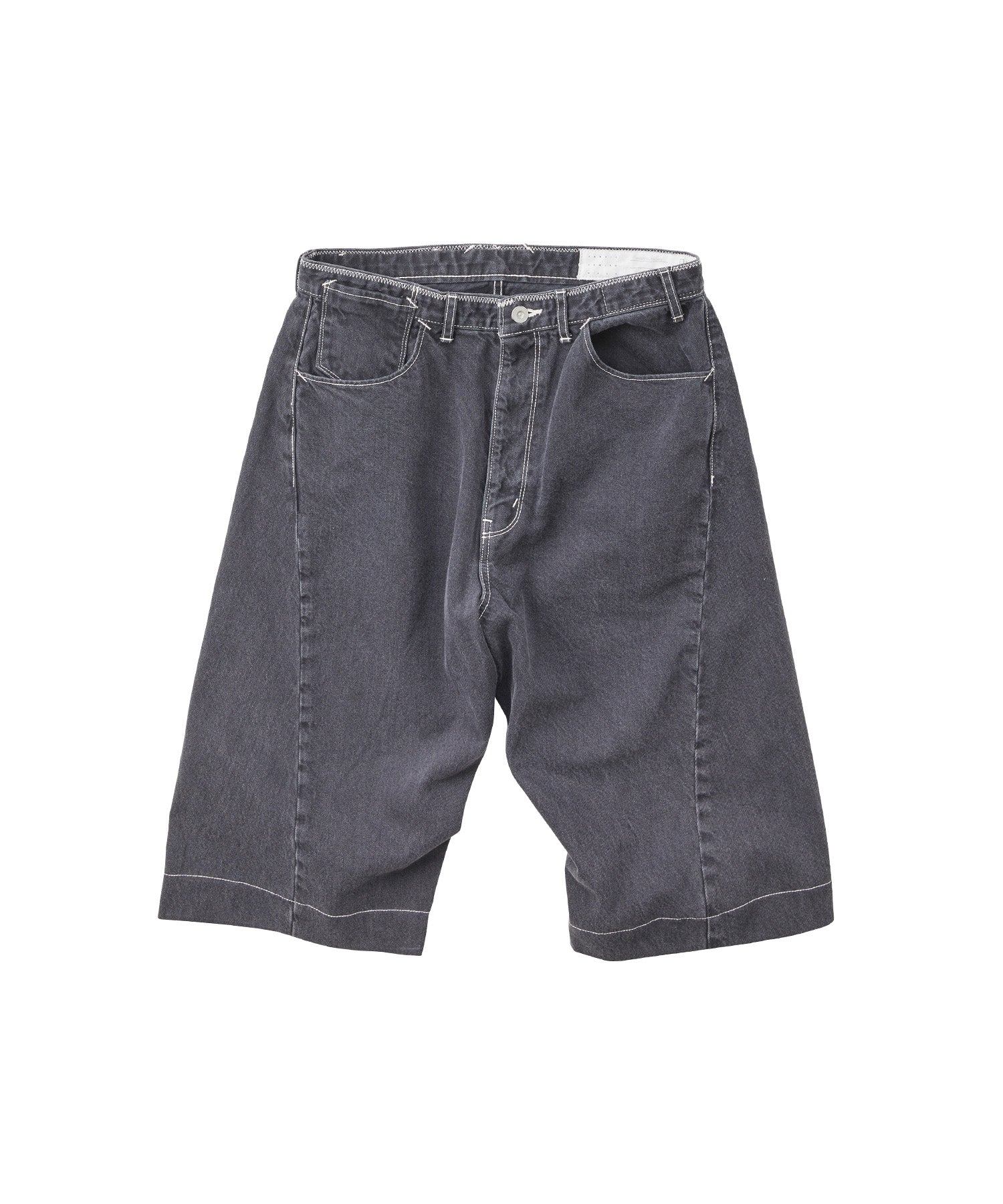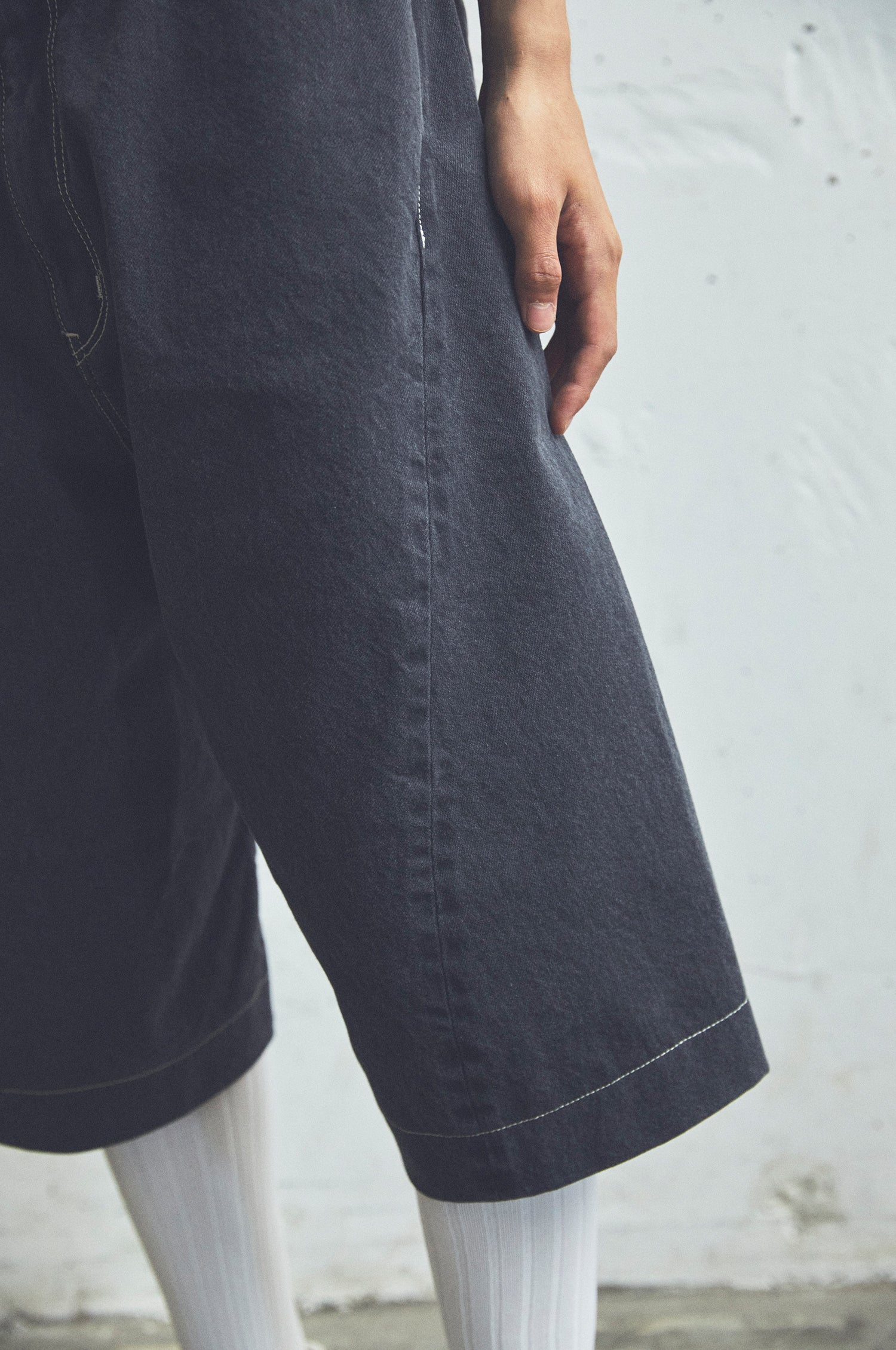 伝統的なデニムショーツの概念を覆す、3Dパターンを採用したワイドデニムショーツ。膝丈のバランスが絶妙で、立体感のあるシルエットが洗練された印象を与えます。