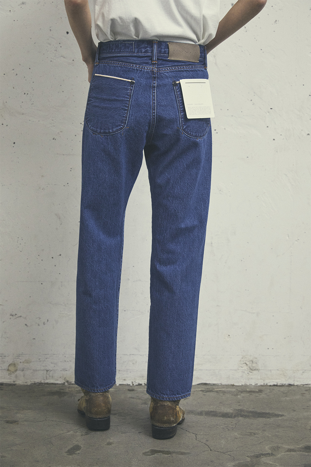 ディテールへのこだわり スリムストレートシルエット – 腰回りにフィット感を持たせつつ、ストレートなラインを描く美しいシルエット。 蛇行するステッチワーク – 高度な職人技が生み出す、唯一無二の縫製ディテール。 2度縫い工程 – 強度と耐久性を高めるための丁寧な仕立て。